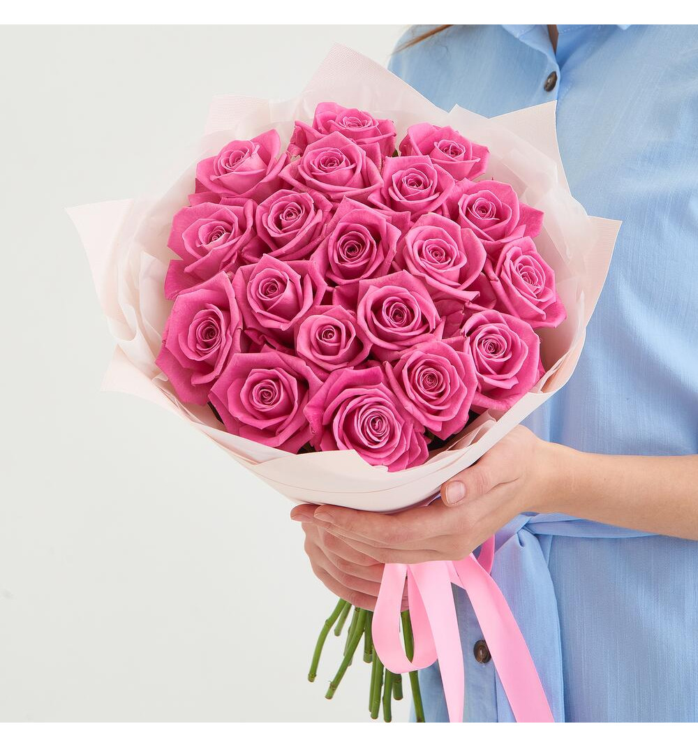 Изящный букет, состоящий из 19 нежных розовых роз, прекрасно оформленных в стильную дизайнерскую упаковку, приносит радость и восхищение. Эта композиция нежных оттенков розового окружит вашего близкого теплом и заботой. Идеальное сочетание красоты цветов и уникального дизайна сделают этот букет великолепным подарком для особого человека, подчеркнут вашу нежность и заботу, а также станут прекрасным дополнением к особым моментам и событиям в жизни.